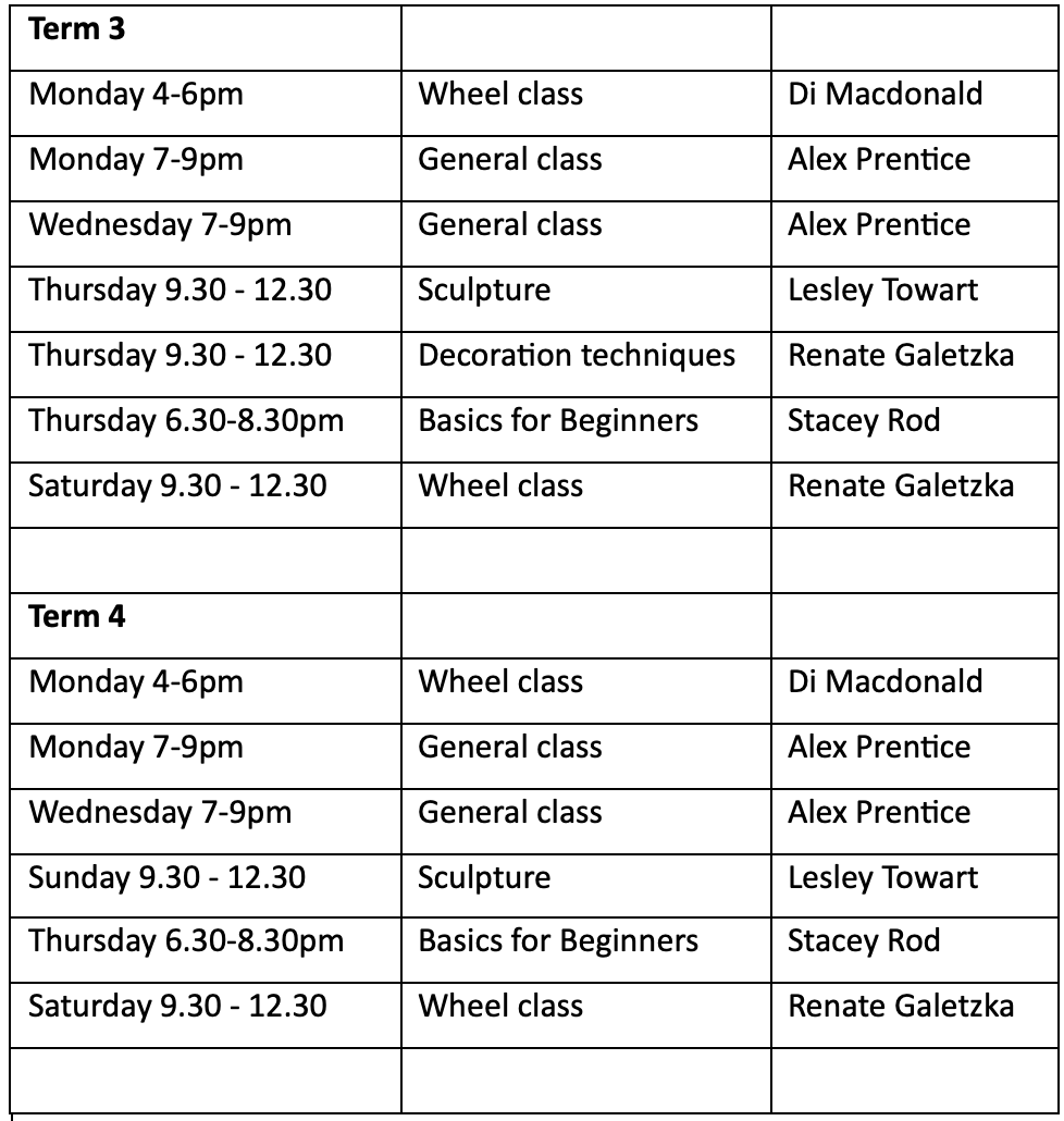 3 week drying period then raw glazing 11 Sept, 9.30am – 1.00pm